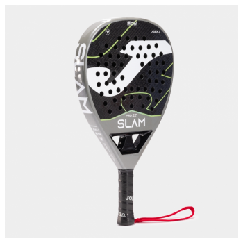 Pala de pádel Slam Pro, modelo diseñado en forma de diamante que destaca por su combinación de potencia y control, lo que la convierte en una pala altamente polivalente. Gracias a su versatilidad es ideal para jugadores expertos que buscan terminar puntos clave y sacar máximo rendimiento a cada situación de juego.